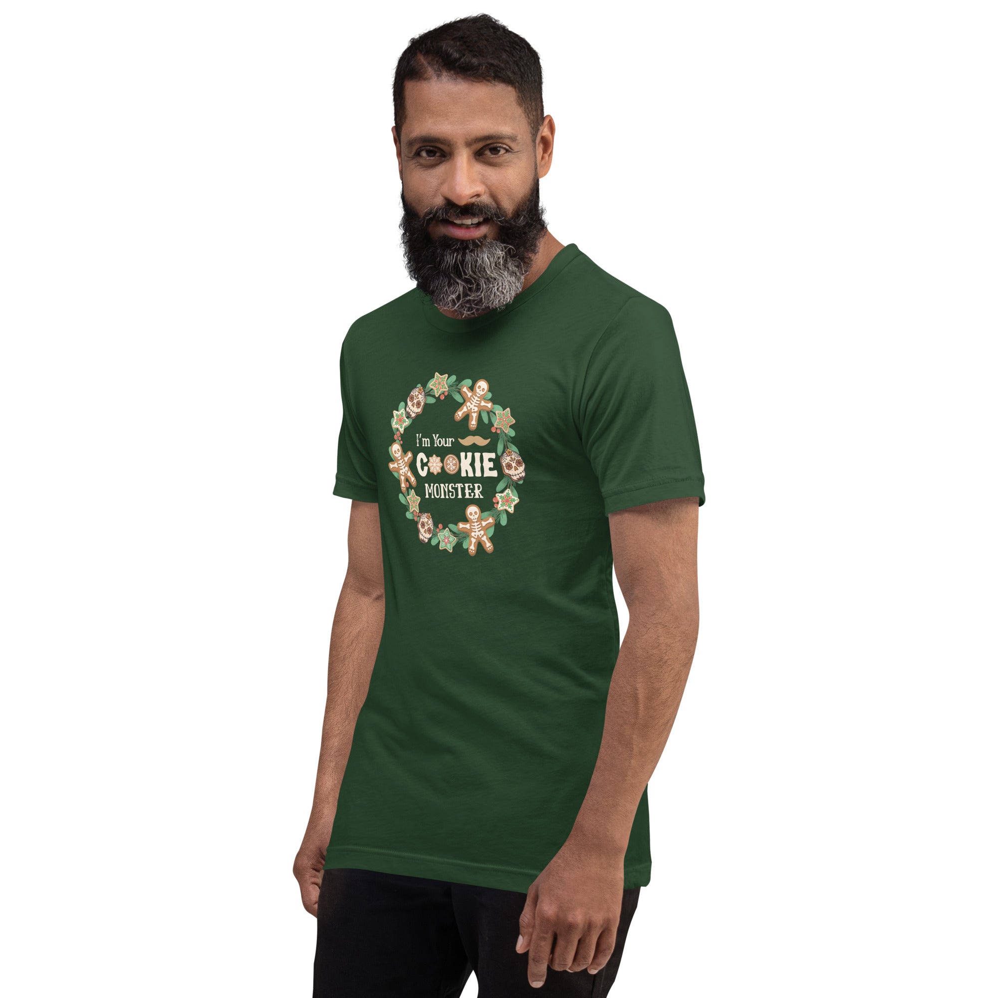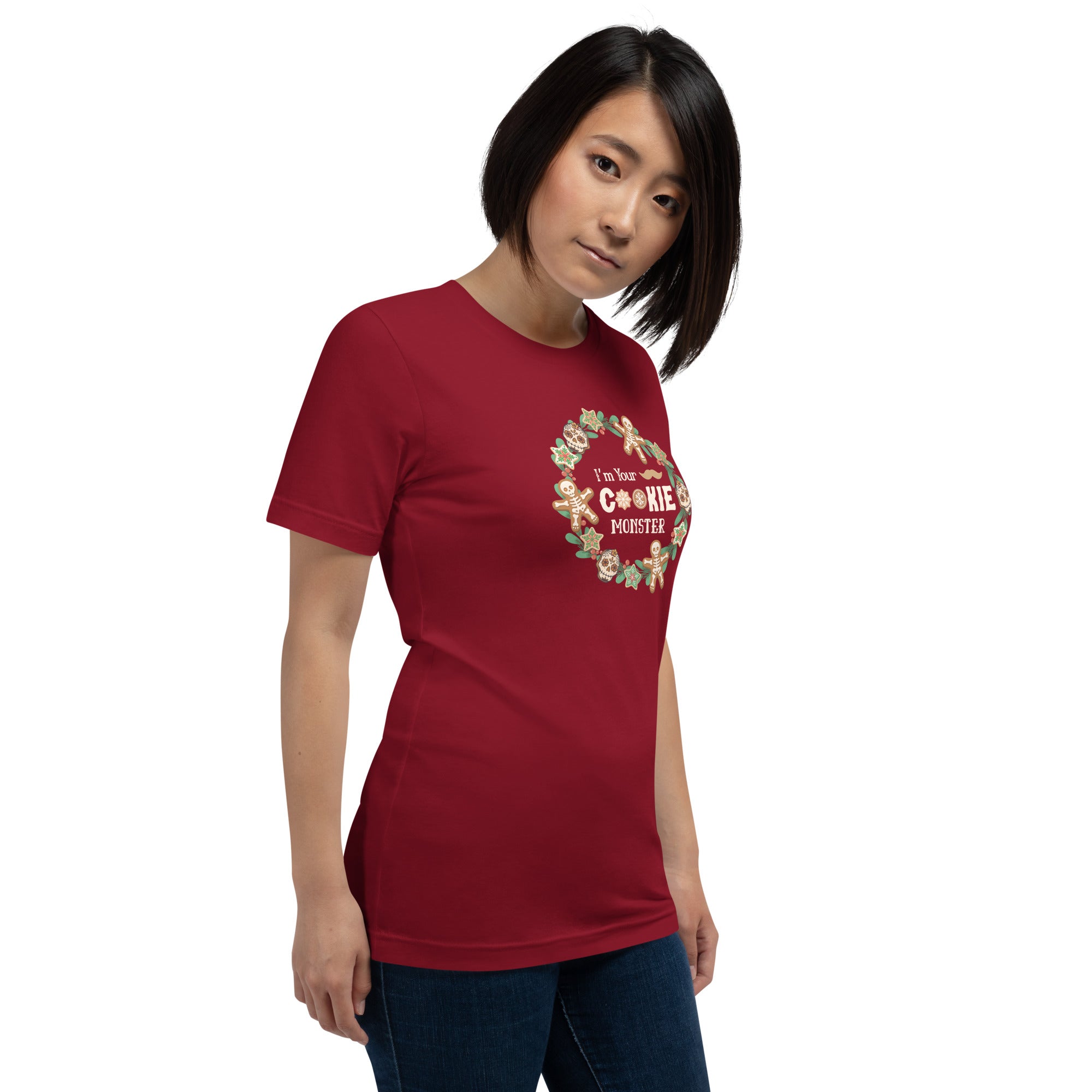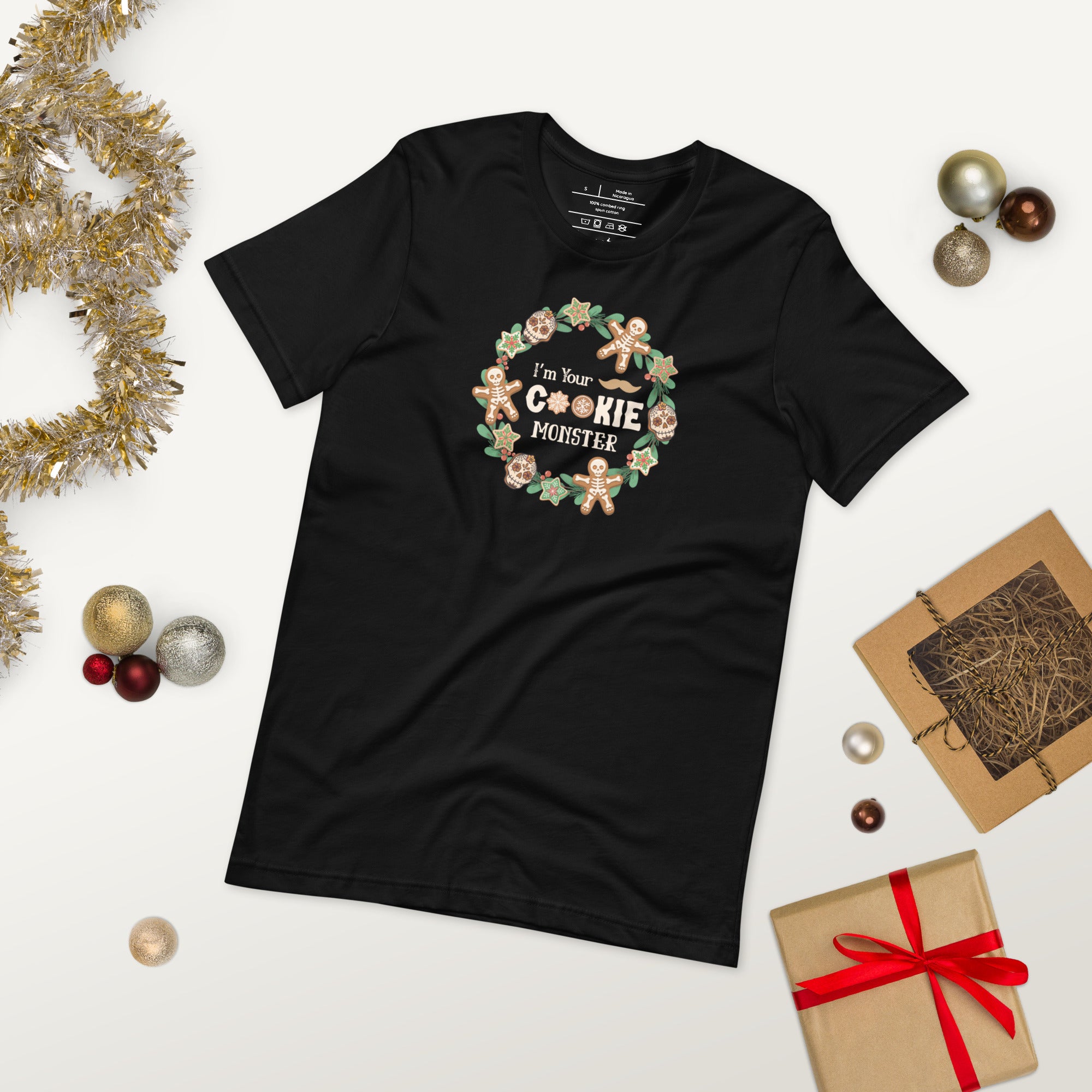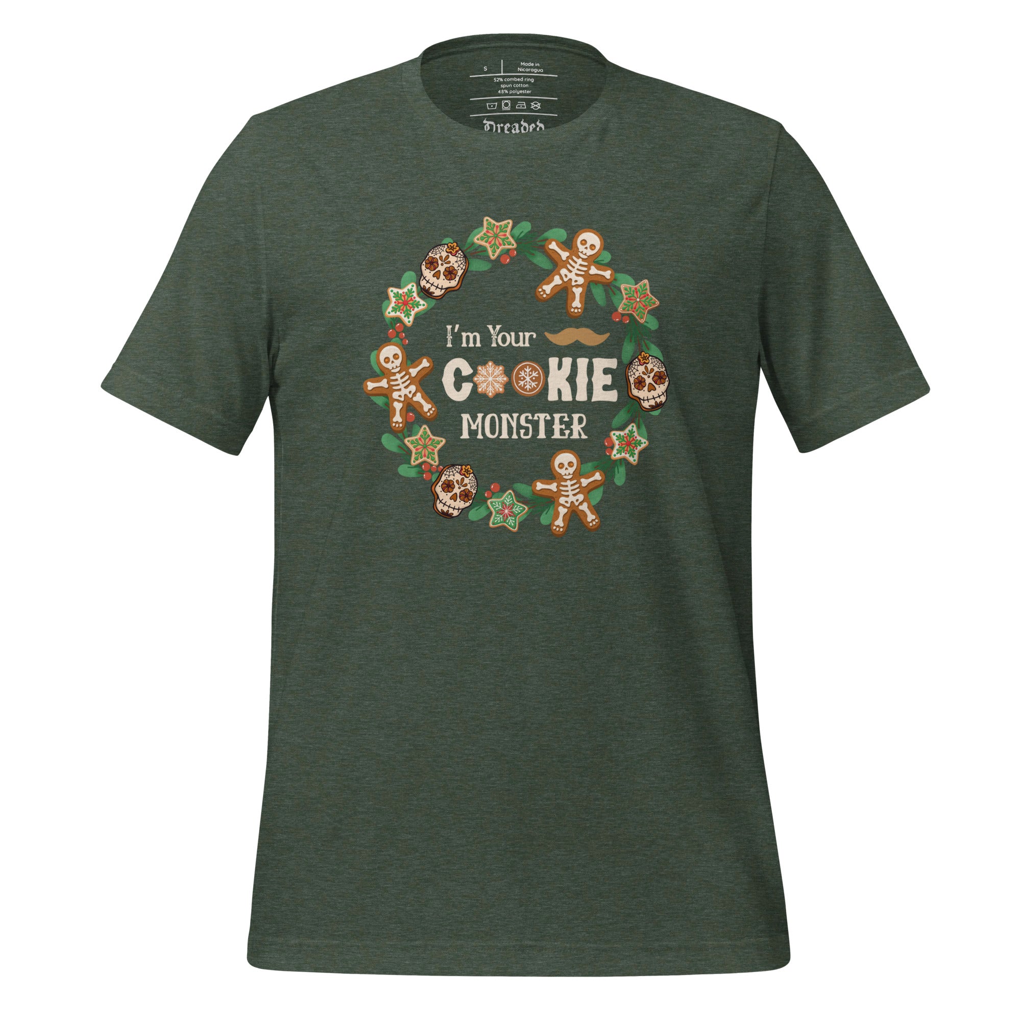 If Doc Holliday ever showed up to Christmas dinner… this would be his shirt. Our “I’m Your Cookie Monster” T-Shirt puts a darkly festive spin on the classic Western quote “I’m your huckleberry,” featuring bold typography framed inside a holly wreath decorated with spooky-cute holiday cookies.