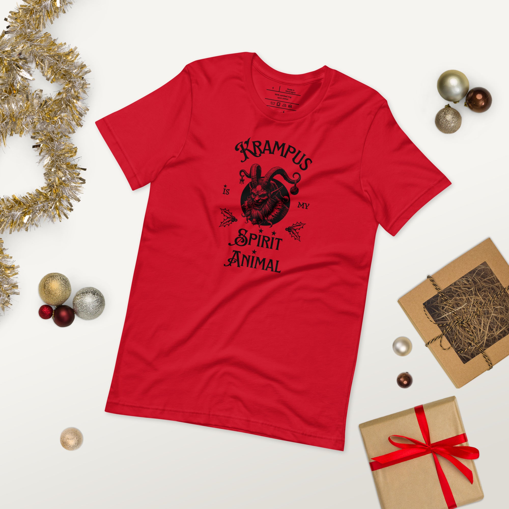 Make your holiday season delightfully wicked with our “Krampus Is My Spirit Animal” Christmas T-Shirt. This design blends dark folklore, humor, and holiday cheer into one unforgettable look.